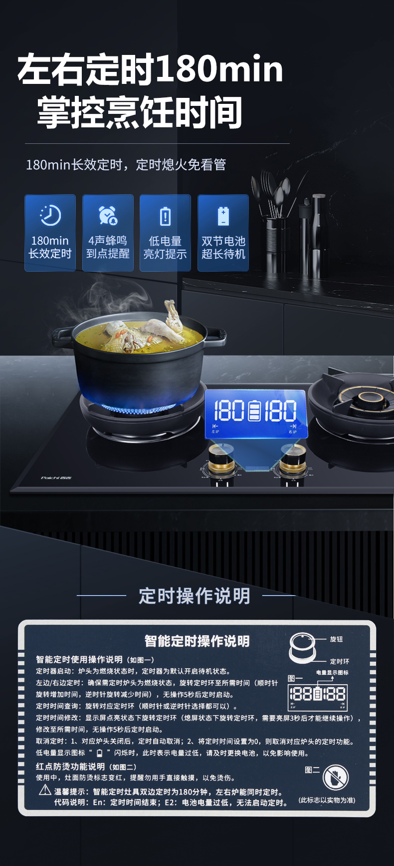 5.2kW聚能火焰,70%熱效率,180分鐘 定時烹飪
