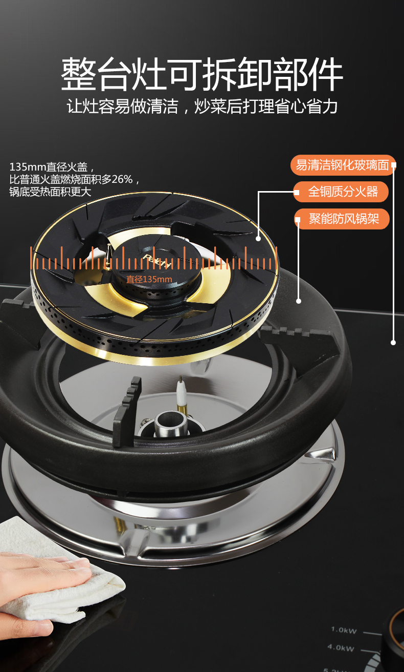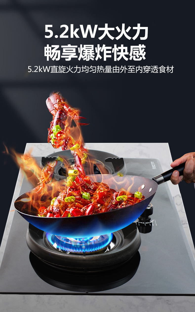 直旋大火力,5.2kW聚能猛火灶,64%高熱效率