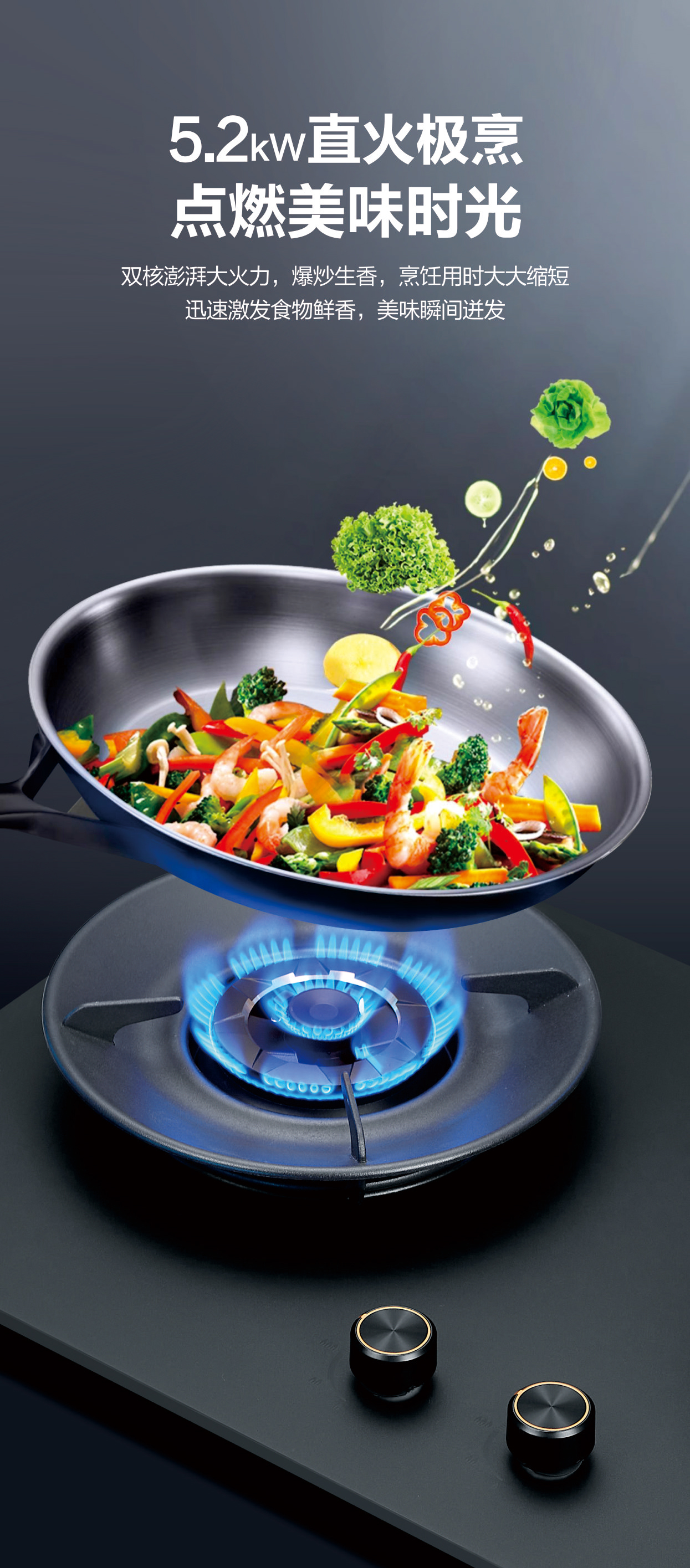 70%高熱效率 5.2kW大火力,荷葉仿生易清潔